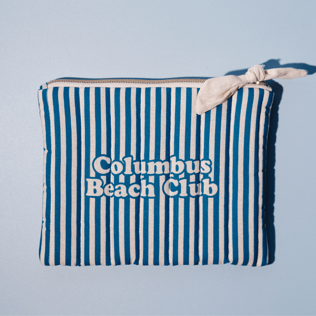 This summer, make room for an accessory that’s as practical as it is stylish: the Columbus Beach Club pouch! Featuring fresh blue and white stripes and a clever compact size, this limited-edition pouch is designed to keep your essentials close during all your sunny adventures.
